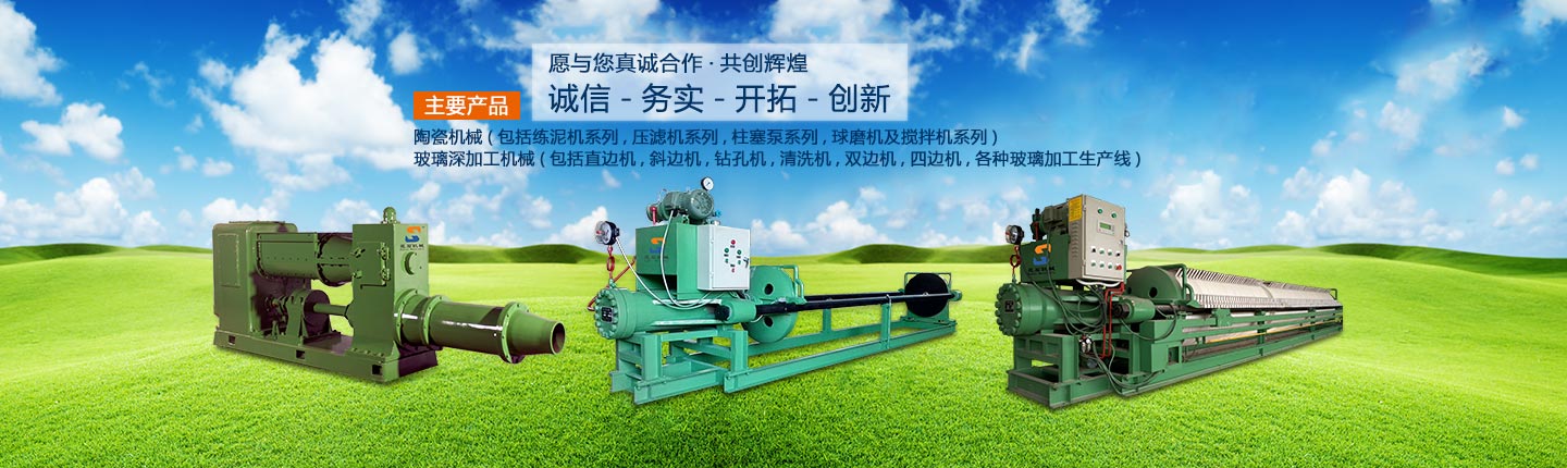 主要產(chǎn)品有:陶瓷機(jī)械(包括練泥機(jī)系列、壓濾機(jī)系列、柱塞泵系列、球磨機(jī)及攪拌機(jī)系列)